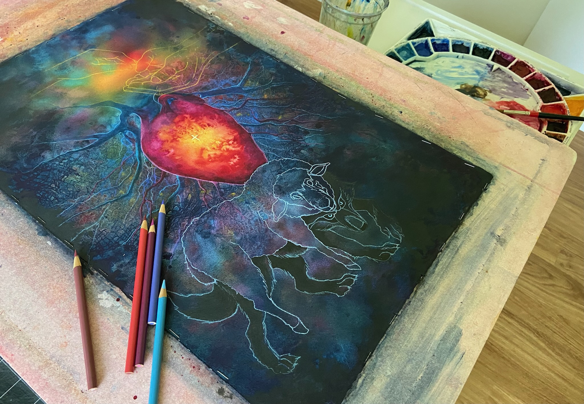 one abstract painting for each book of the bible, currently 46 of the 66 are finished